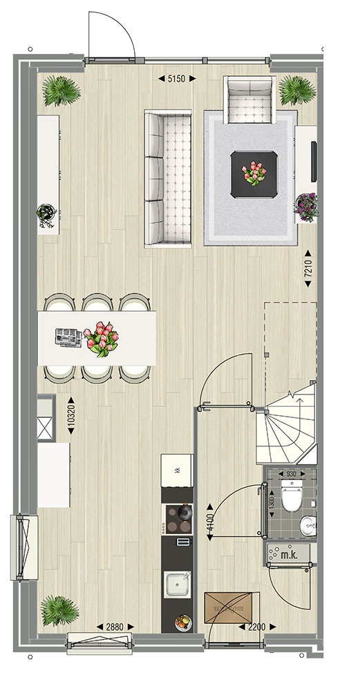 De Delftse stoep aan de voorzijde van de woning geeft ruimte voor het plaatsen van een mooie plantenbak of een bankje.